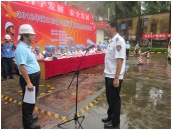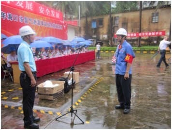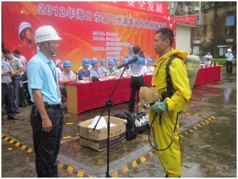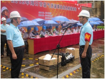 2012年6月19日,海口市氯氣泄露事故應(yīng)急救援演練活動在我司米鋪水廠圓滿舉行。海口市政府副秘書長吳成貴、海口市安監(jiān)局局長林明、相關(guān)市縣和海口市各區(qū)安監(jiān)局局長、省安監(jiān)局和省水務(wù)廳領(lǐng)導(dǎo)、??谑袊Y委和??谑忻穹擂k、海口市水務(wù)集團以及我司領(lǐng)導(dǎo)出席了本次演練活動。