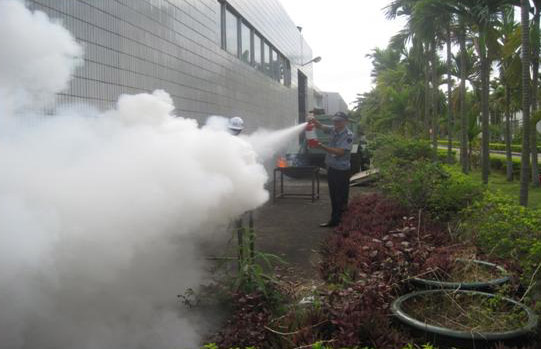 圖2:保衛(wèi)員用滅火器滅火。
