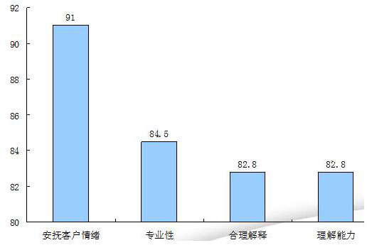 無論是方言服務還是普通話服務,客服代表都應始終保持聲音親切、語速平緩、表達清晰、音量適中并且耐心周到,在這方面我們的平均成績在85分以上,但是還有較大的提升空間。