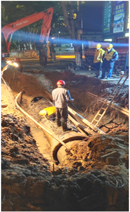 1月29日中午,南海大道保稅區(qū)門口發(fā)生DN800管爆事件。在確認(rèn)漏點(diǎn)后開展維修工作,管道于1月31日凌晨成功修復(fù)。