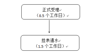 正式受理0.5個(gè)工作日,掛表通水1.5個(gè)工作日。(不包含外線工程行政審批及其施工時(shí)間)