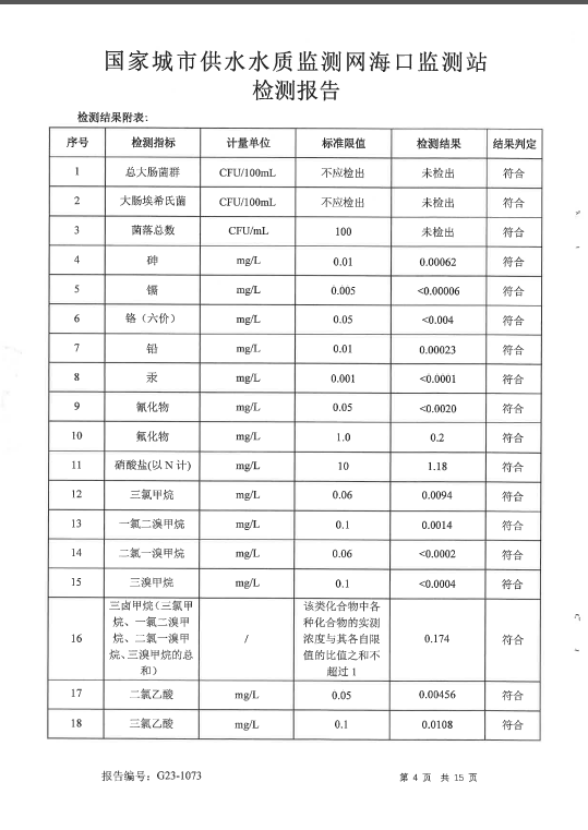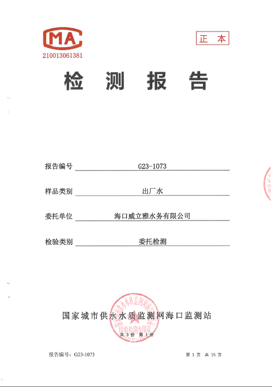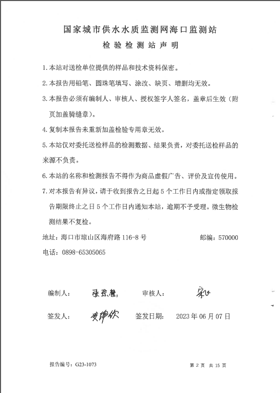 海口威立雅水務(wù)有限公司米鋪水廠2023年上半年年檢檢測報告