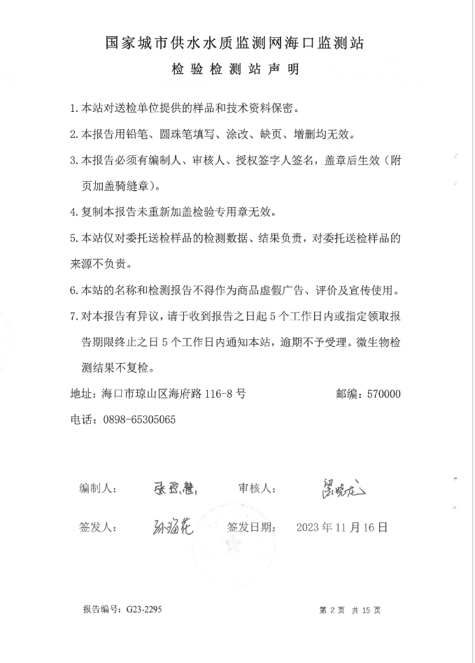 水質(zhì)報告