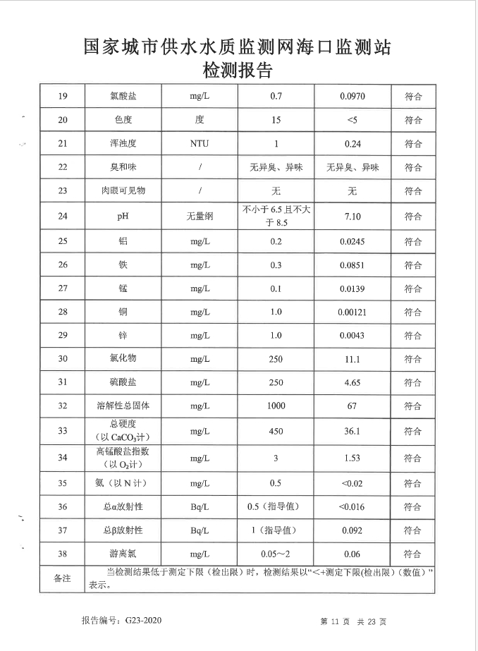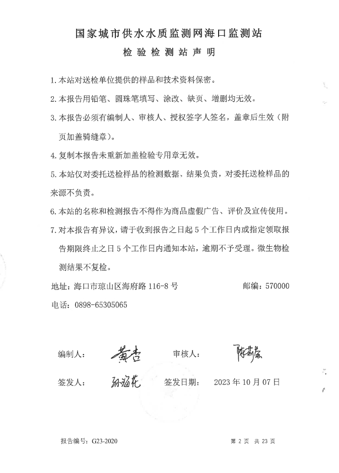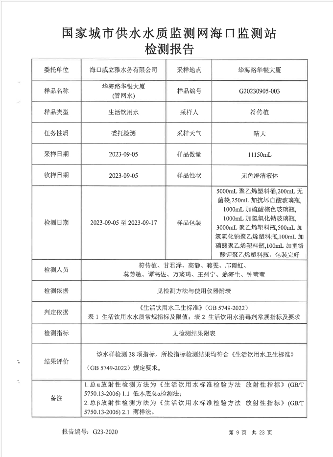 2023年9月??谕⒀潘畡?wù)有限公司管網(wǎng)水水質(zhì)檢測(cè)月檢報(bào)告
