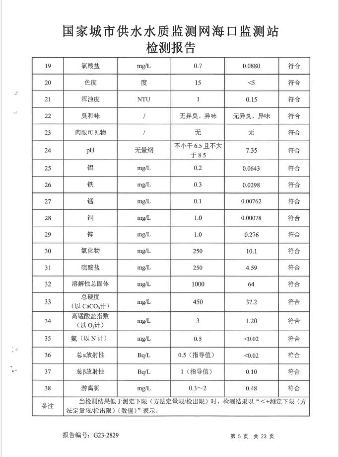 2023年11月??谕⒀潘畡?wù)有限公司米鋪水廠出廠水水質(zhì)檢測月檢報(bào)告