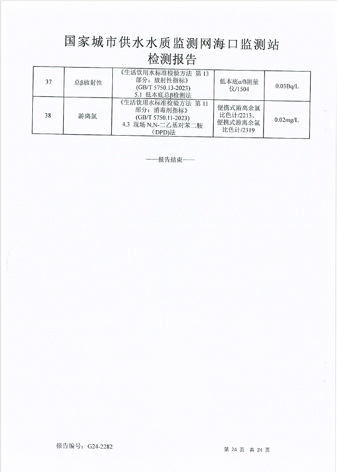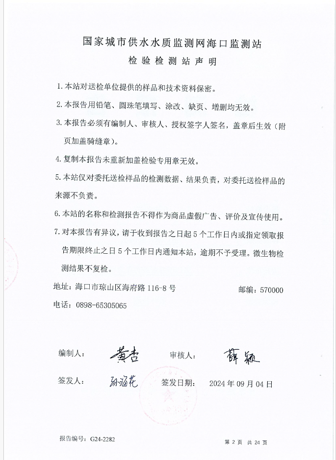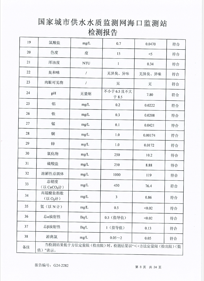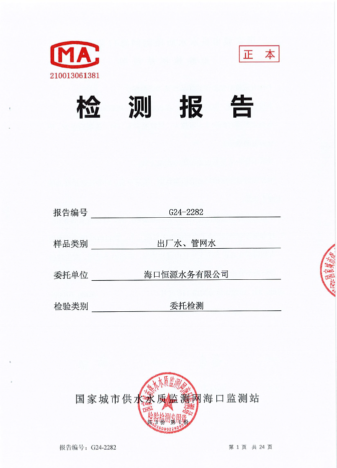 2024年8月恒源水務有限公司米鋪水廠出廠水、管網(wǎng)水月檢報告