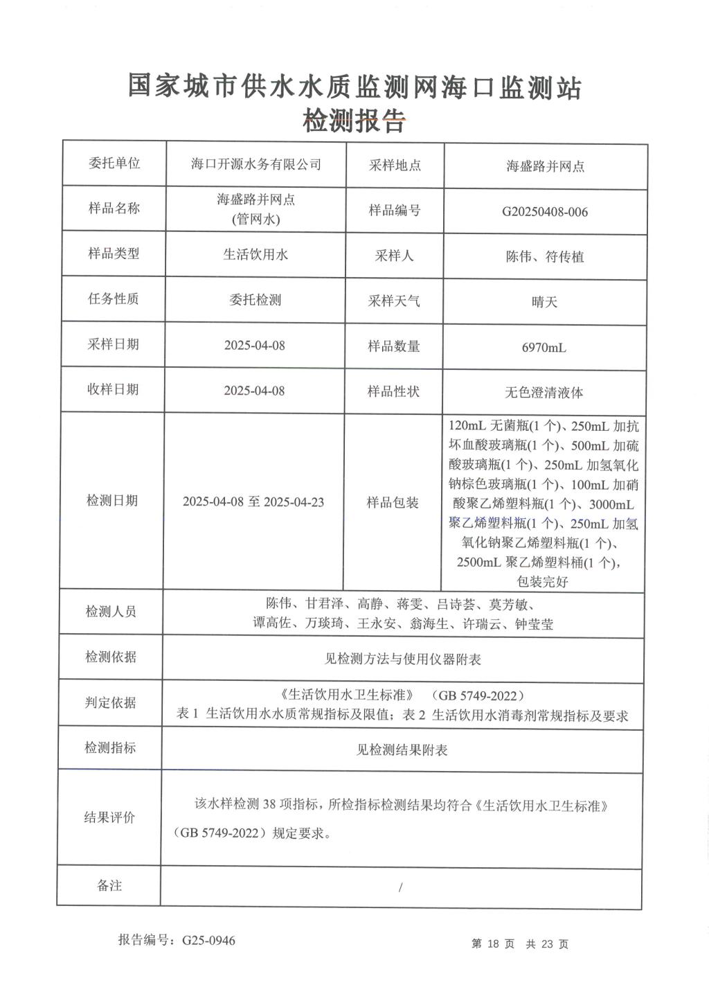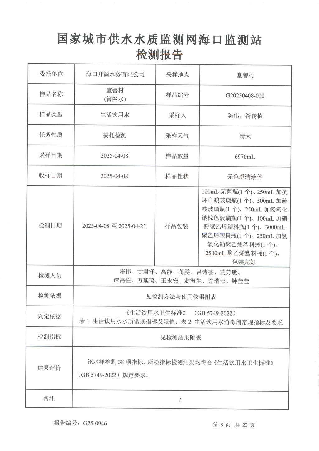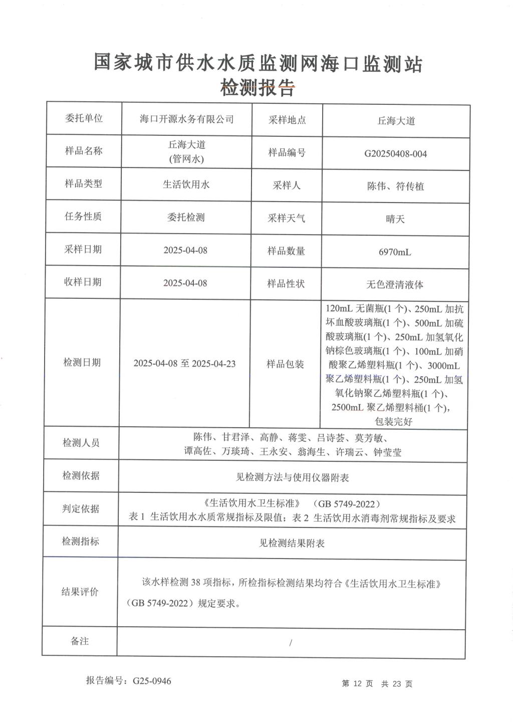 2025年4月開源水務(wù)有限公司米鋪水廠出廠水、管網(wǎng)水月檢報(bào)告