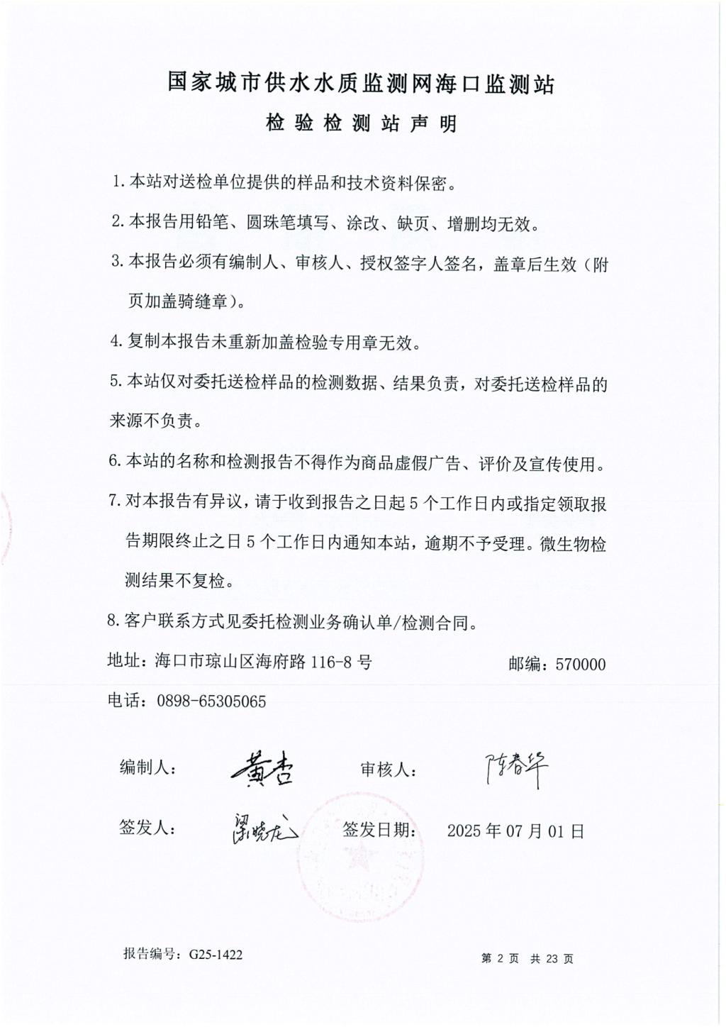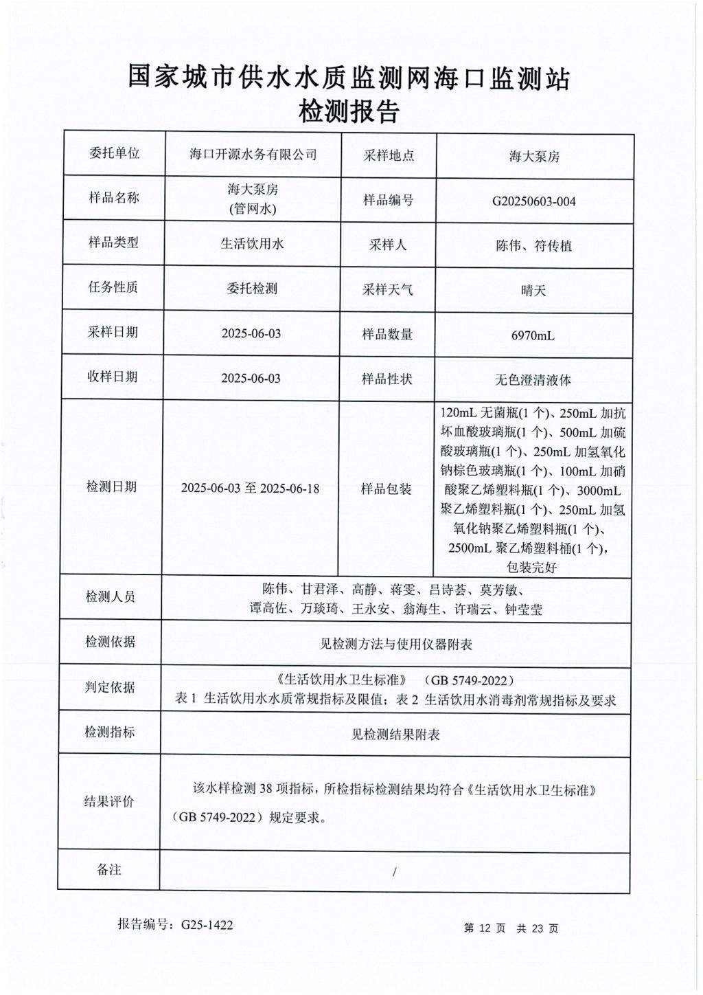 2025年6月開源水務(wù)有限公司米鋪水廠出廠水、管網(wǎng)水月檢報告