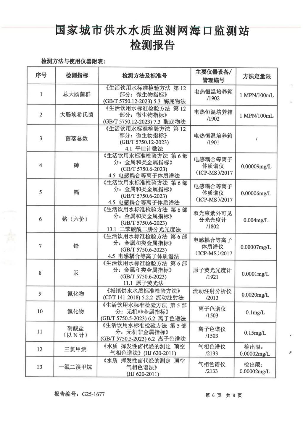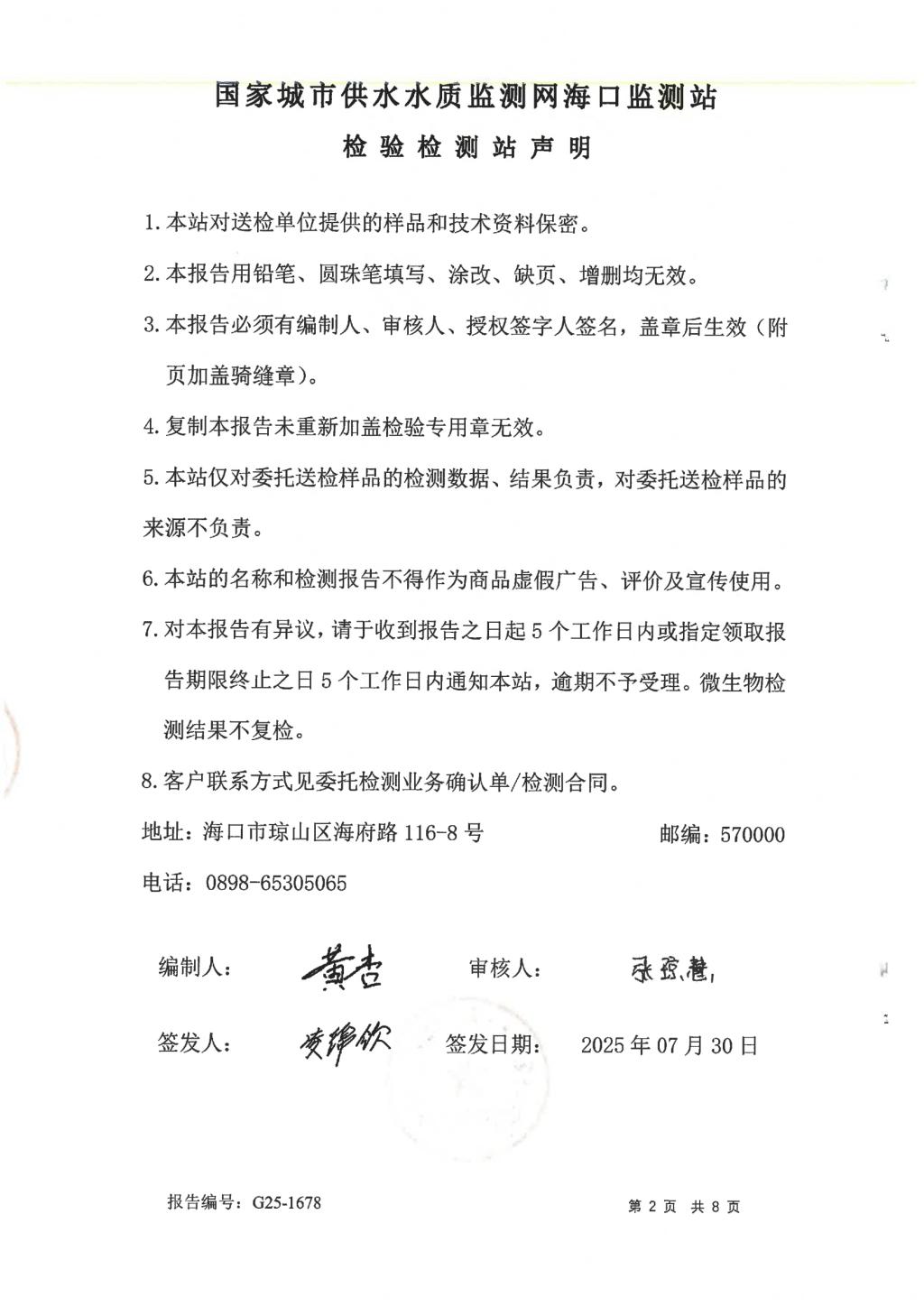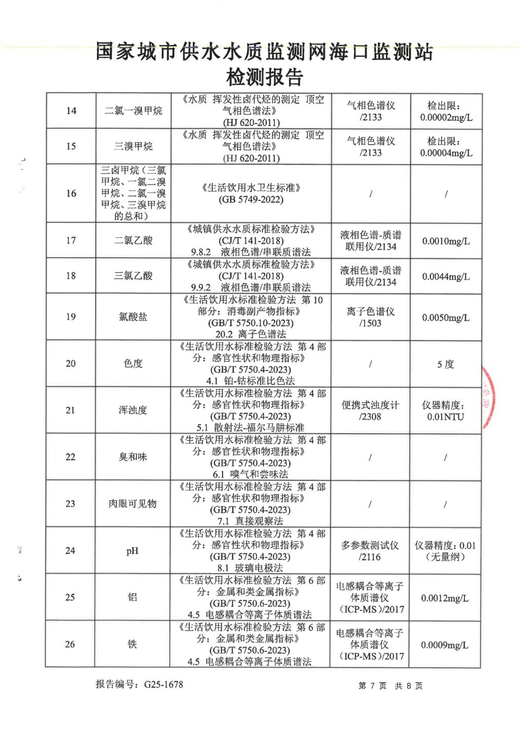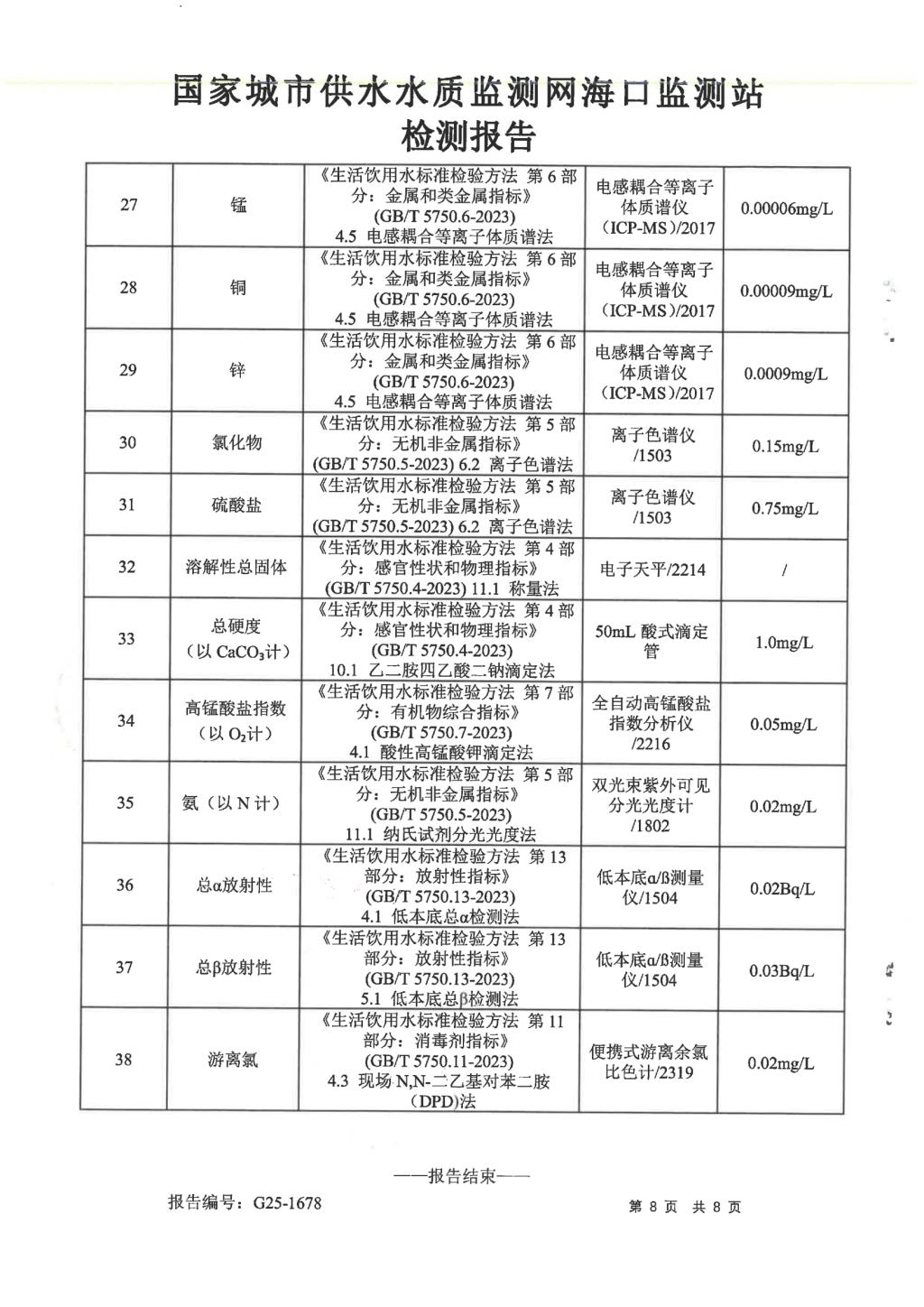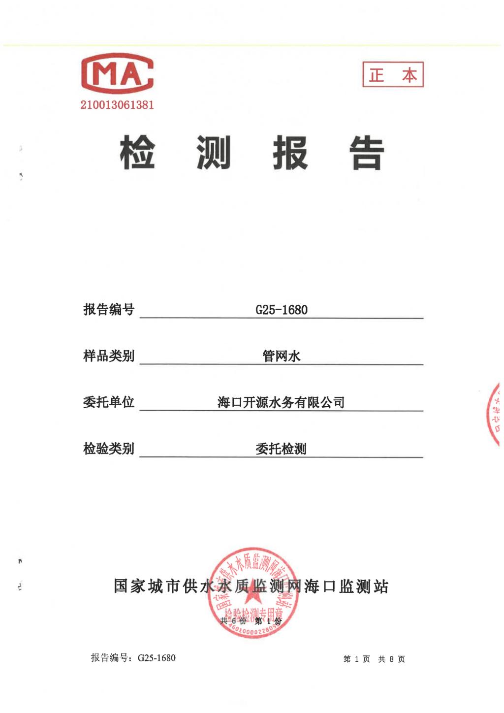 水質(zhì)報告