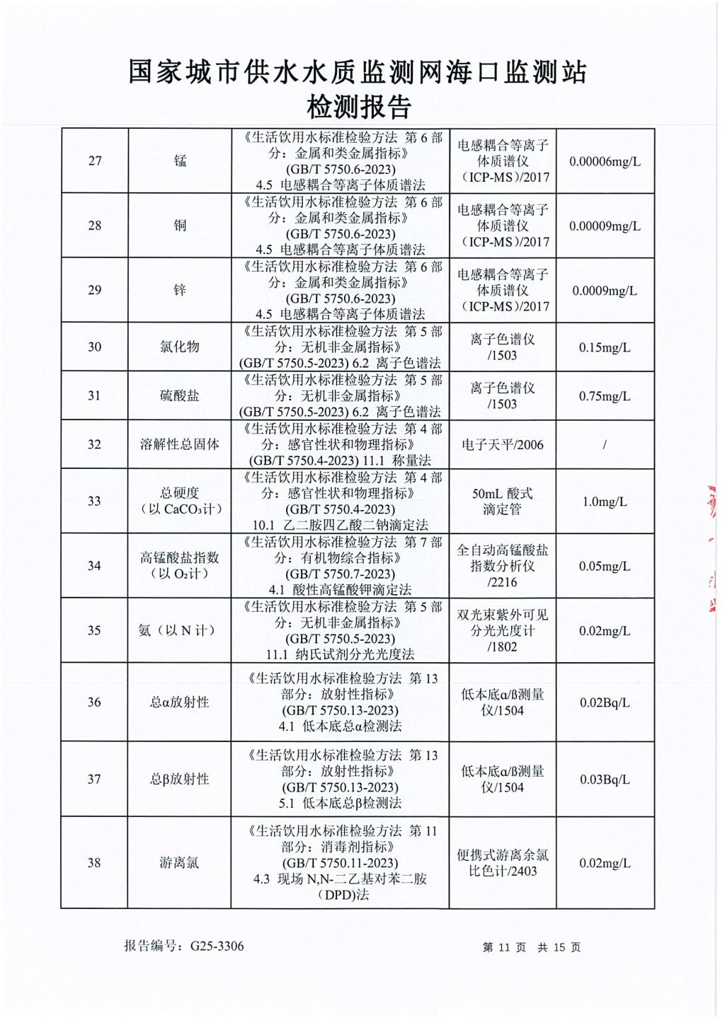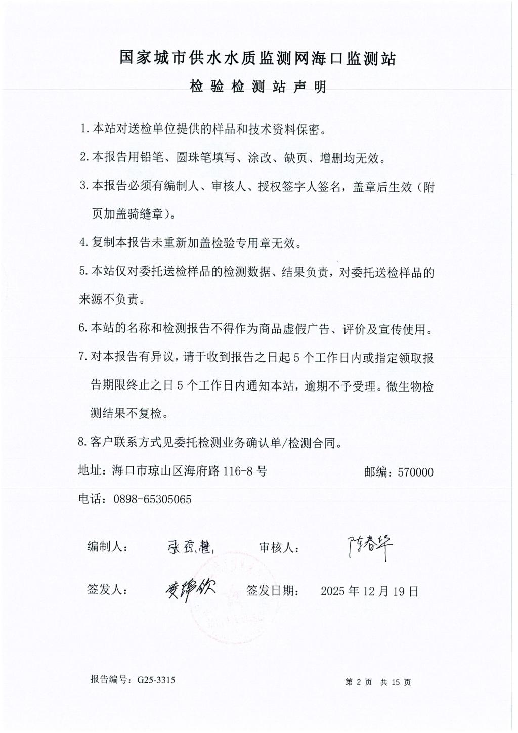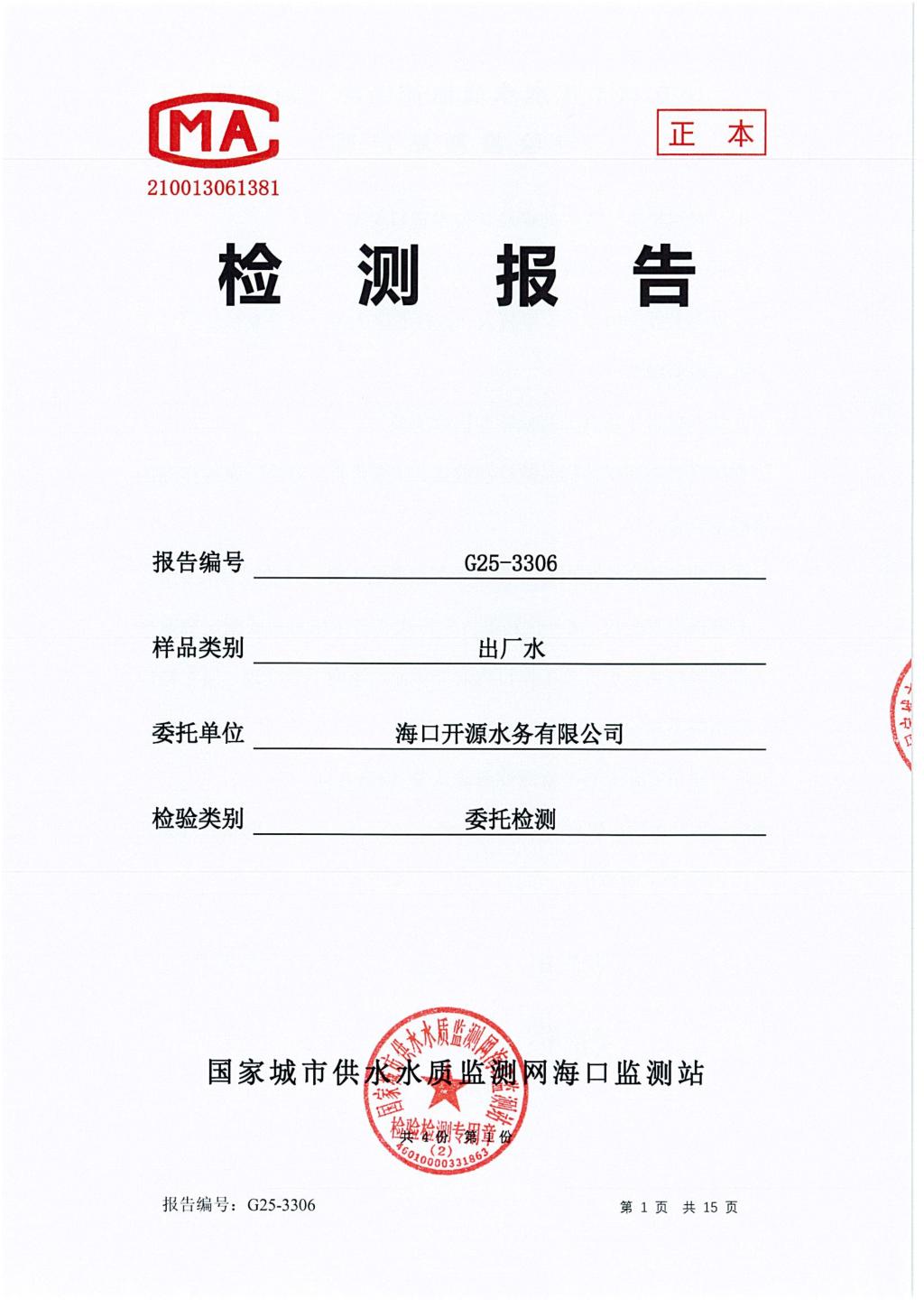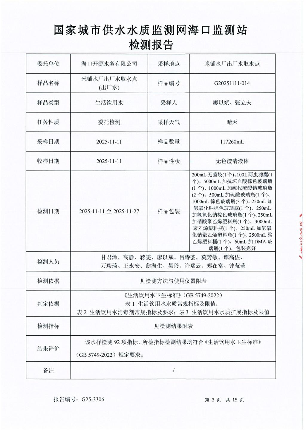 海口開源水務(wù)有限公司米鋪水廠出廠水2025年下半年年檢檢測報(bào)告