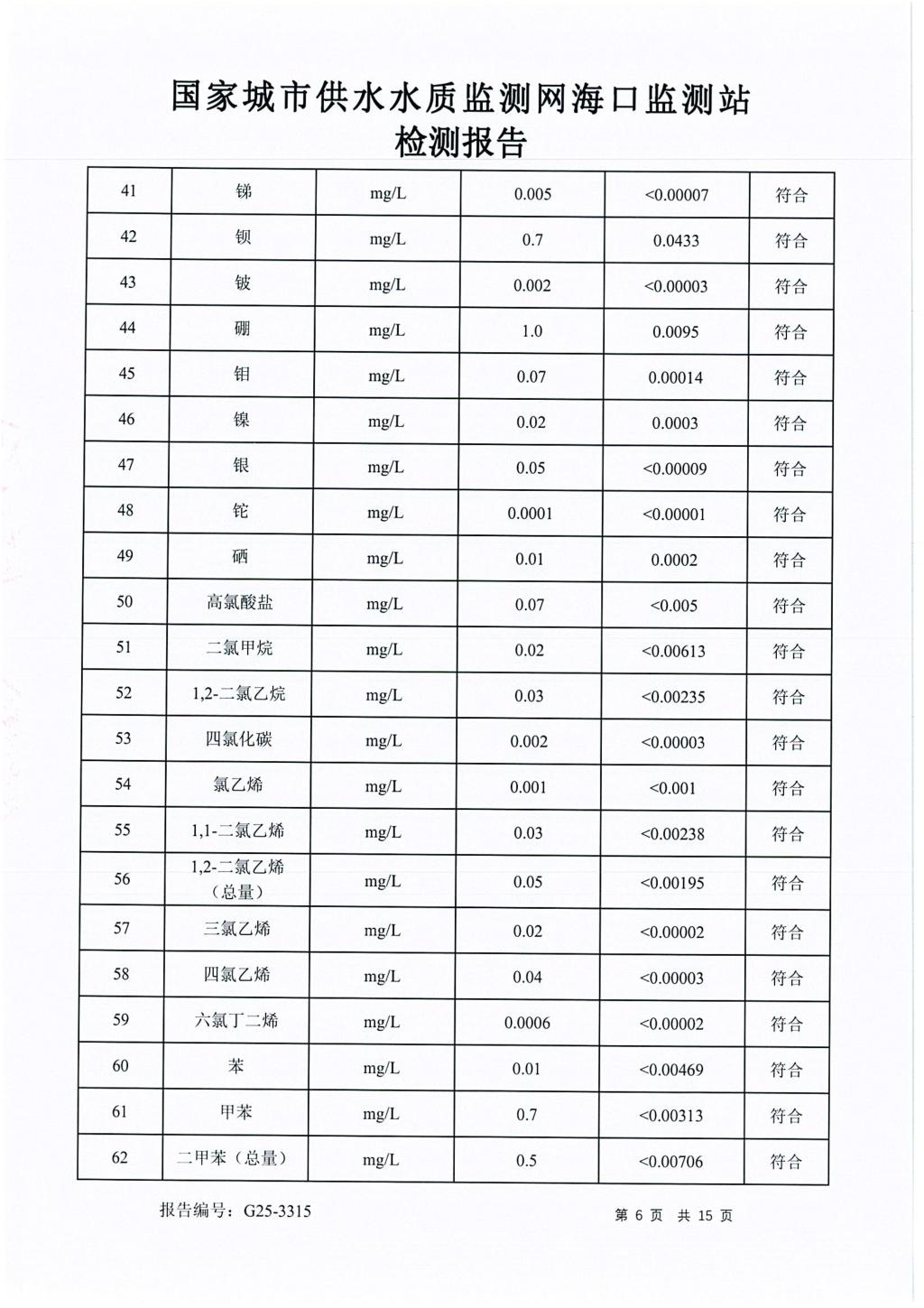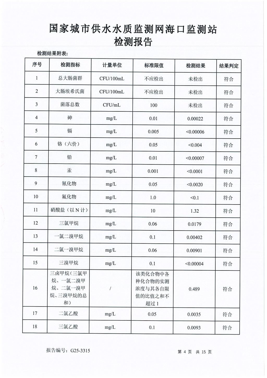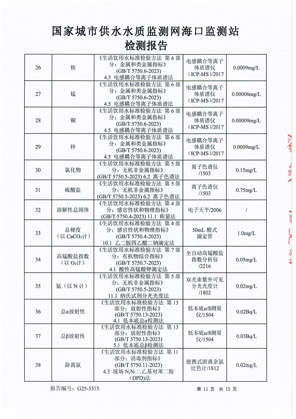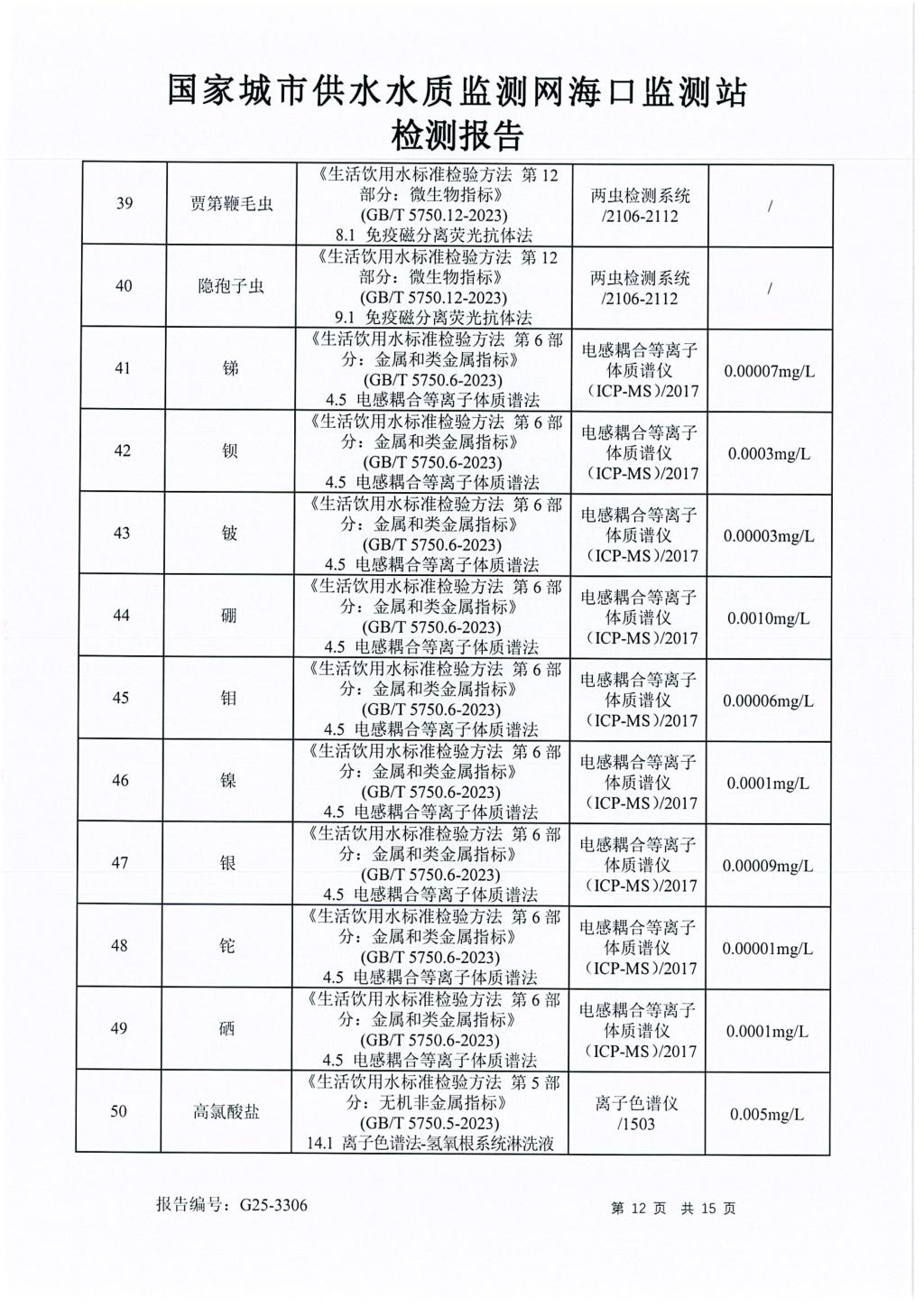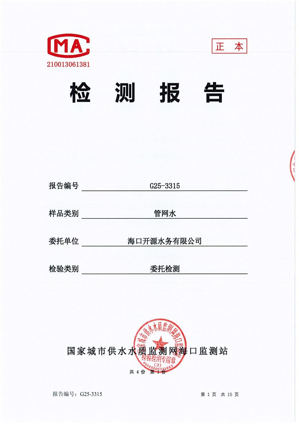 海口開源水務(wù)有限公司米鋪水廠出廠水2025年下半年年檢檢測報(bào)告