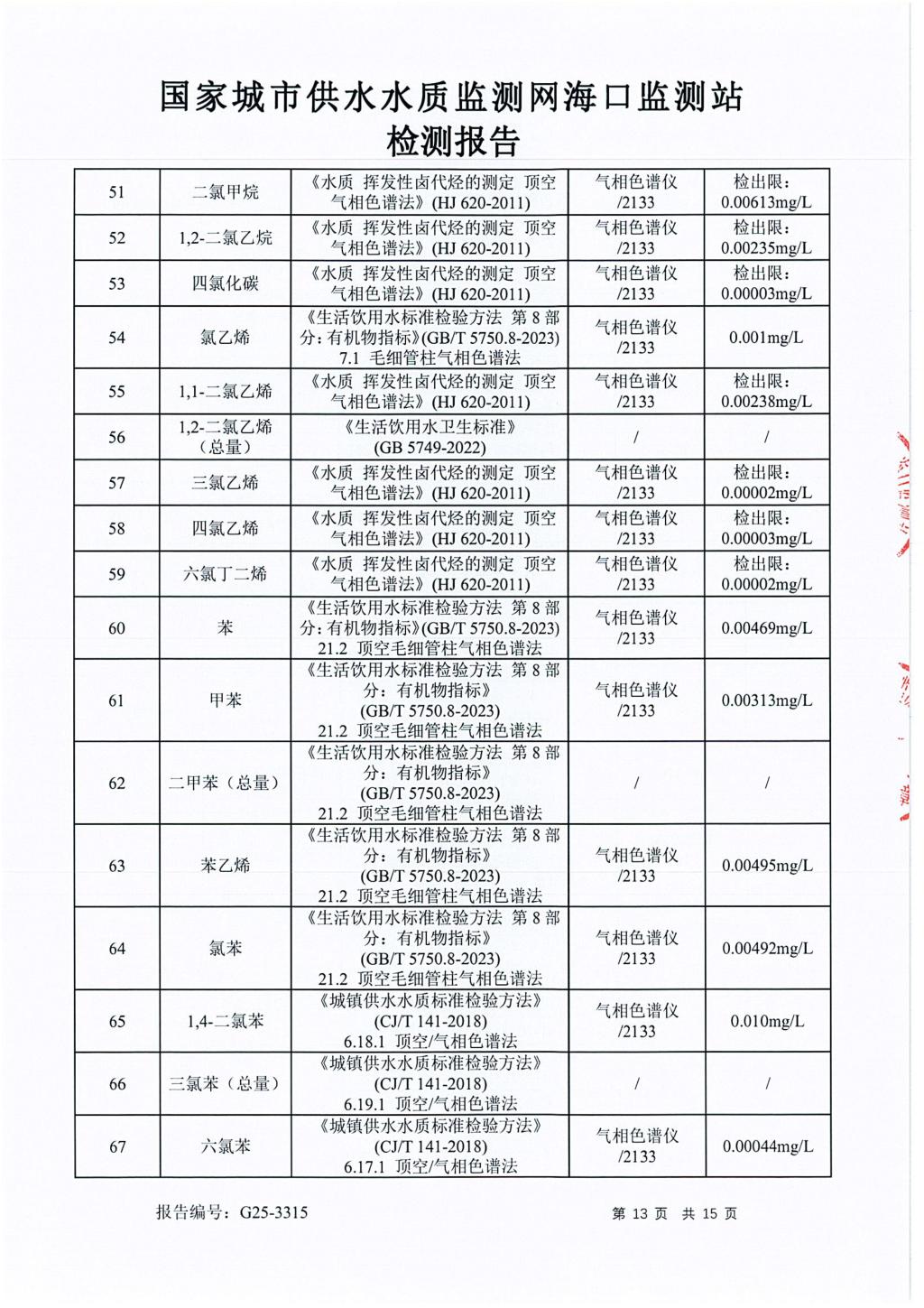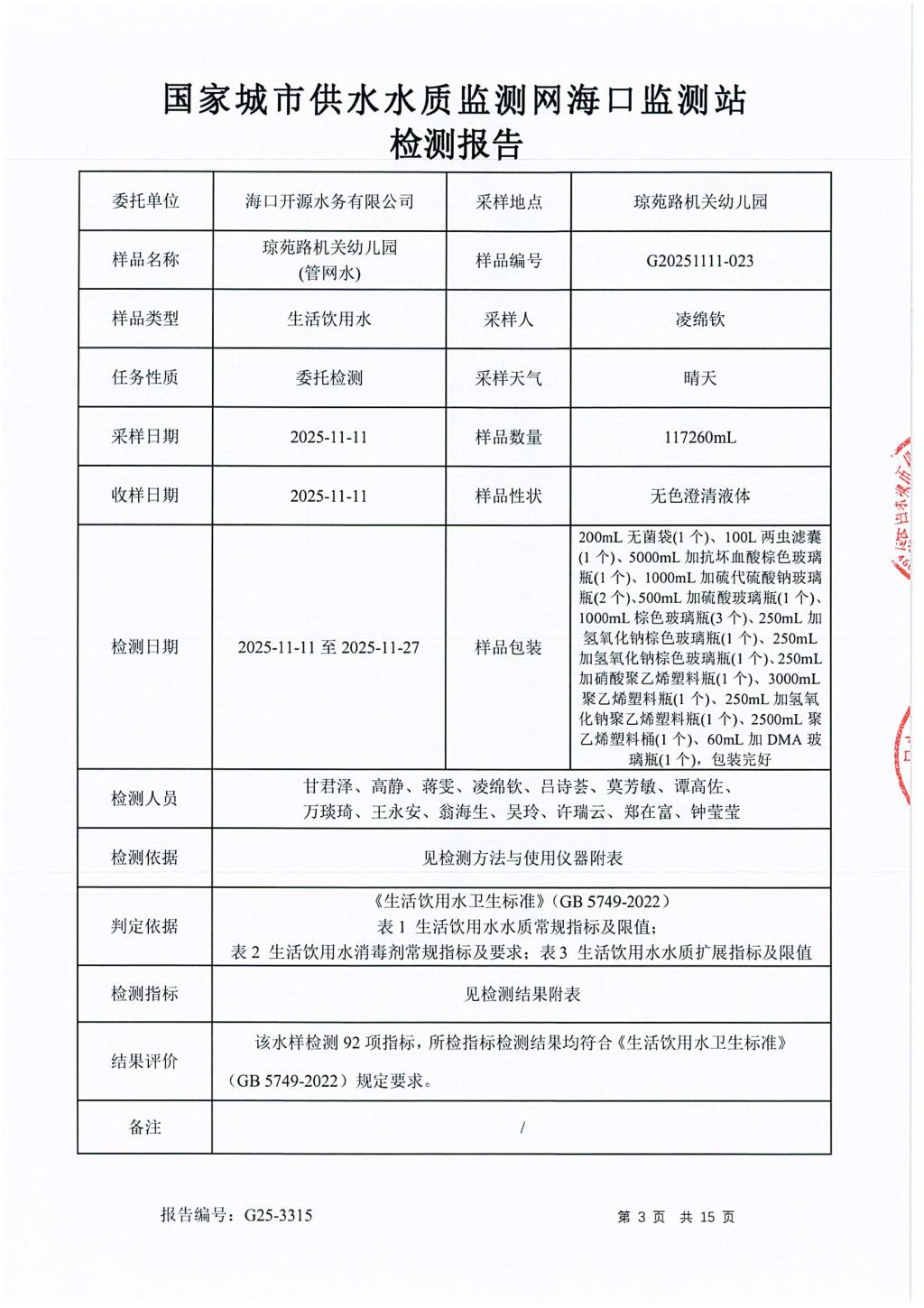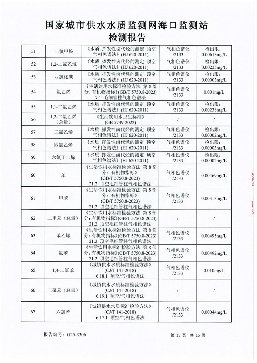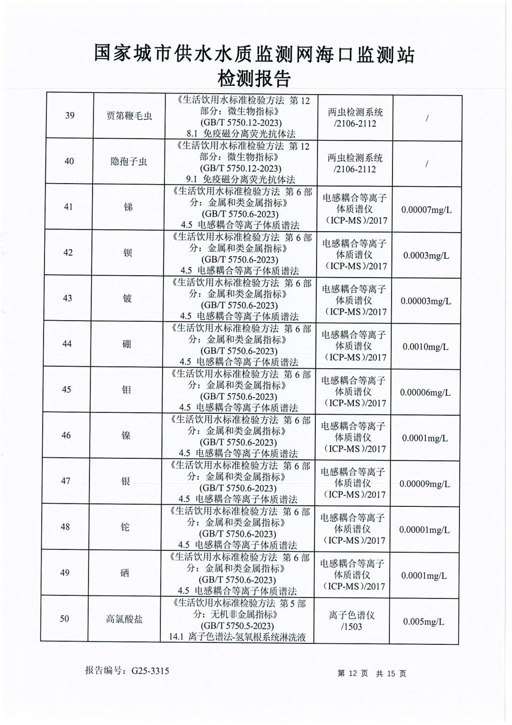 海口開源水務(wù)有限公司米鋪水廠出廠水2025年下半年年檢檢測報(bào)告