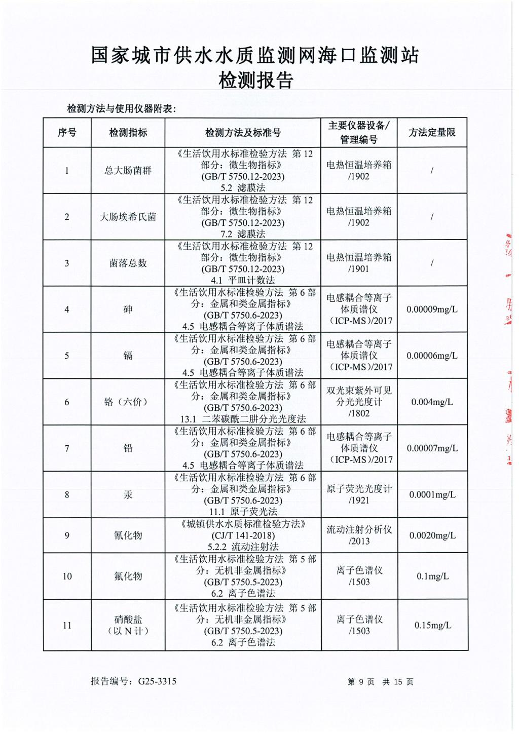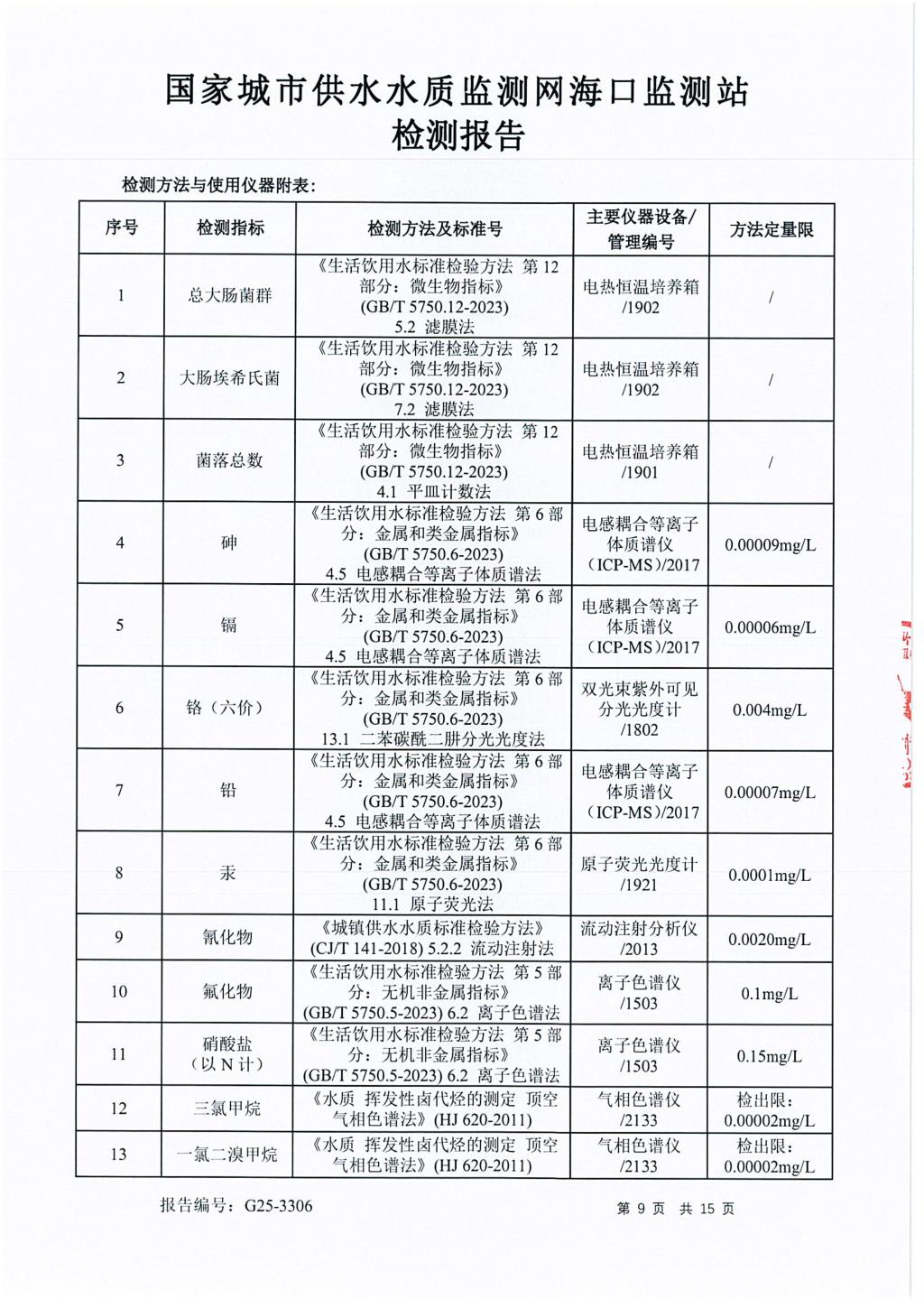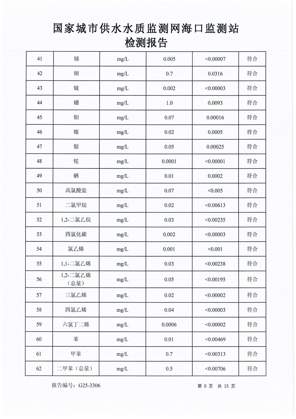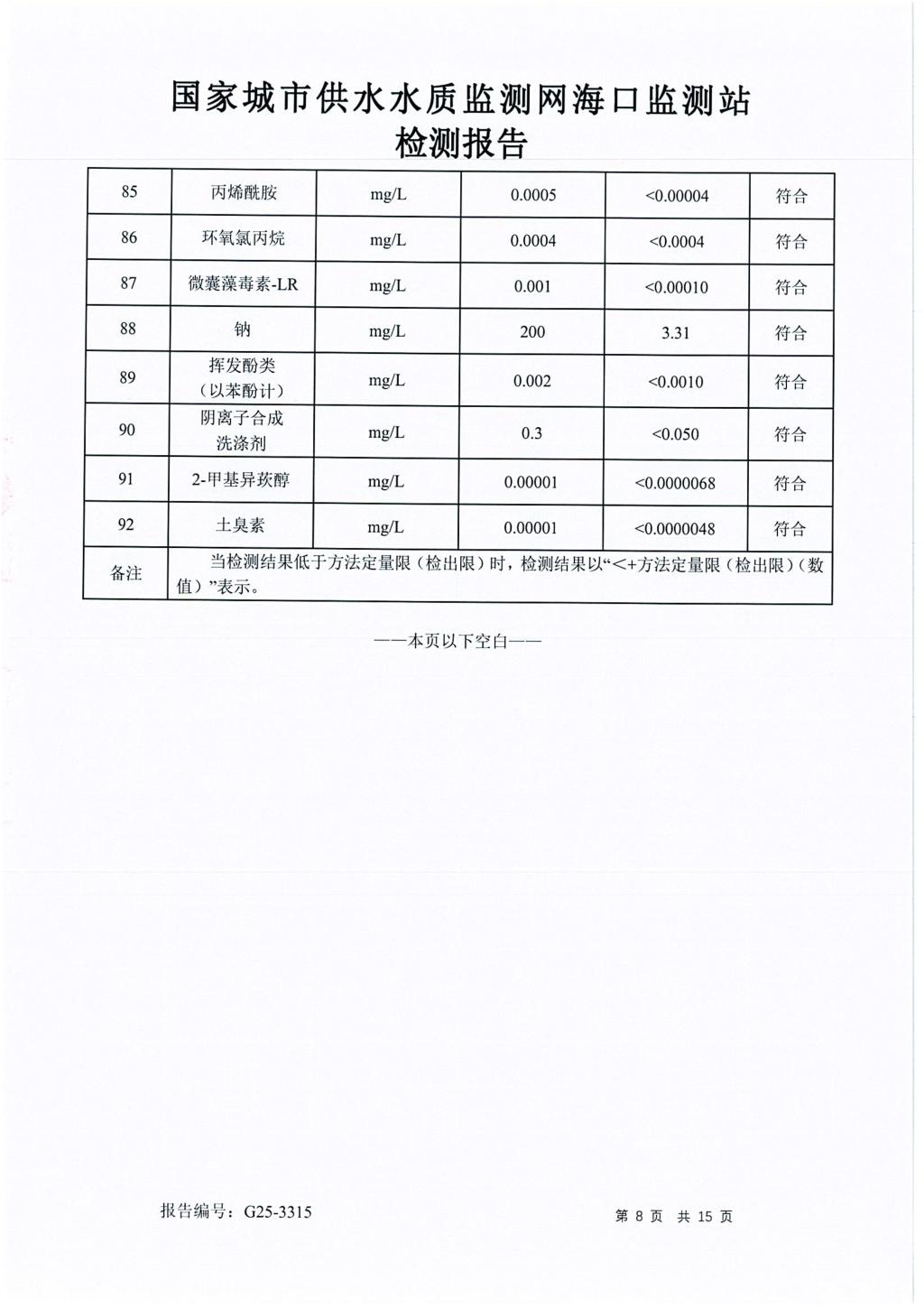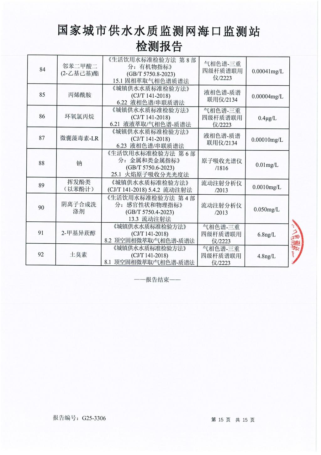 海口開源水務(wù)有限公司米鋪水廠出廠水2025年下半年年檢檢測報(bào)告