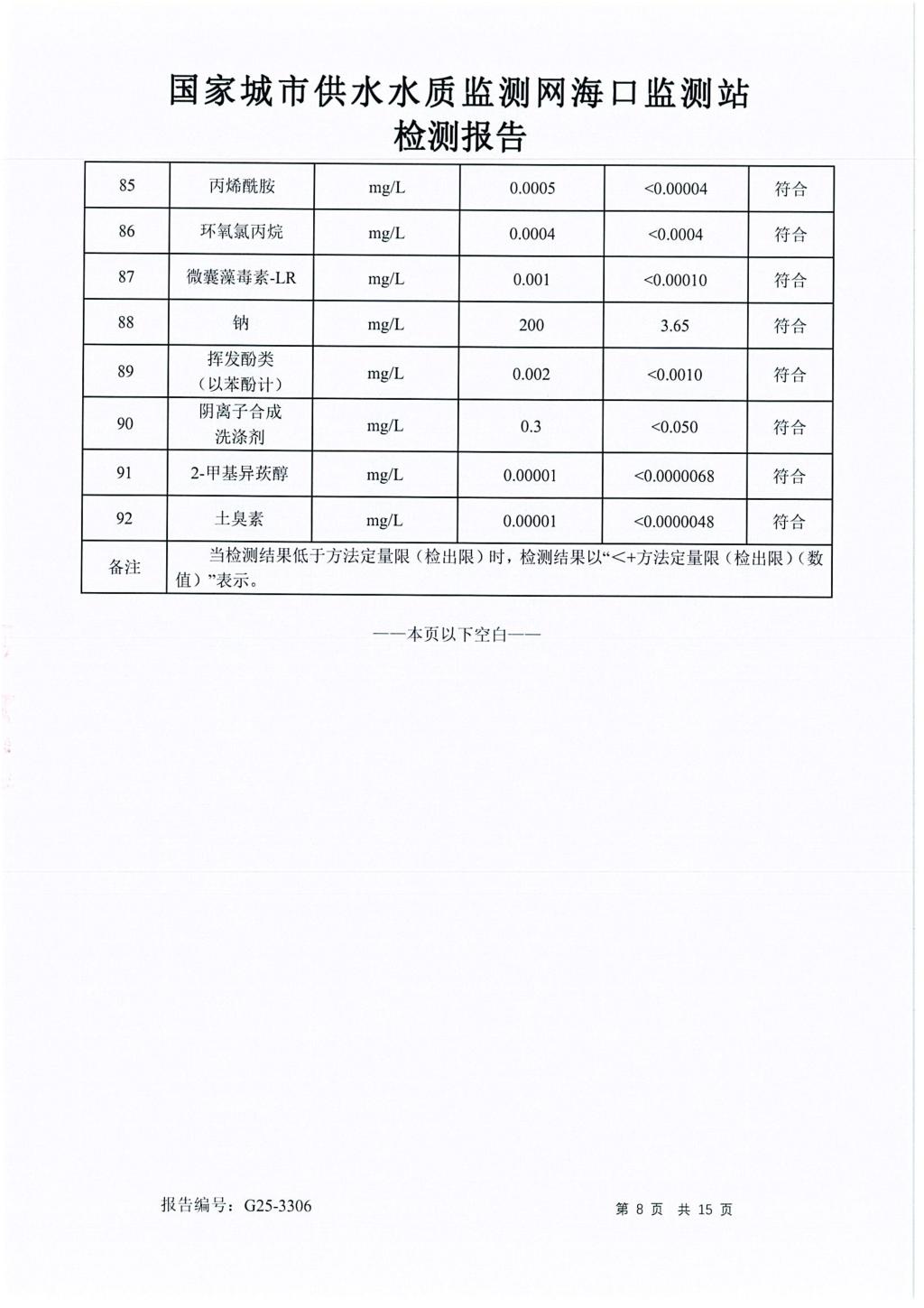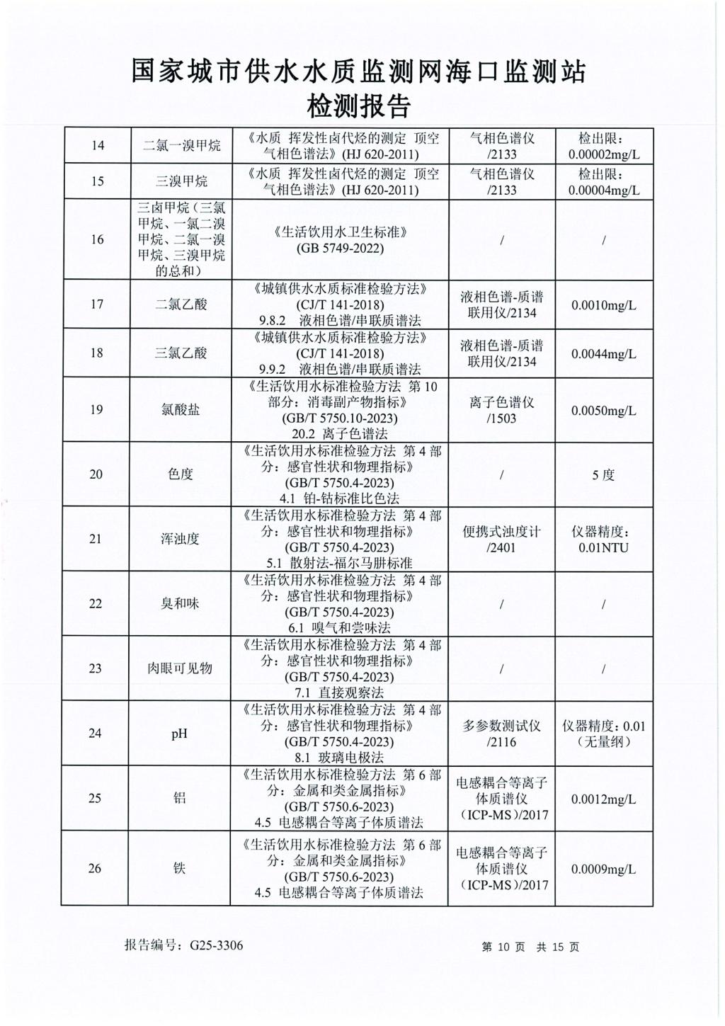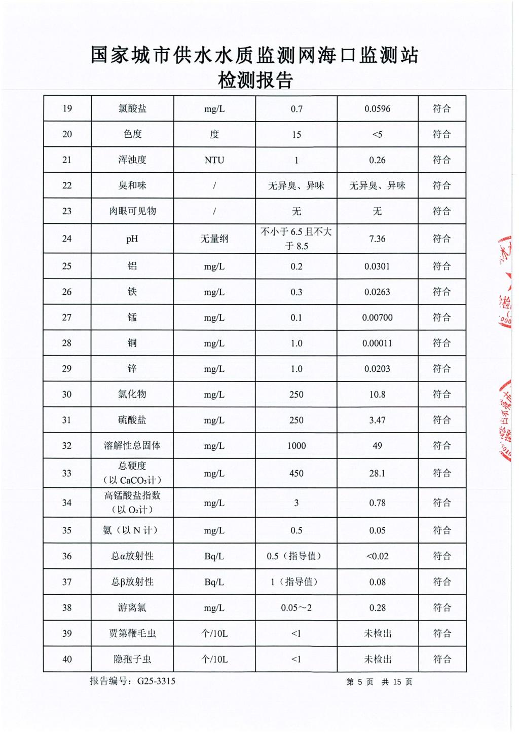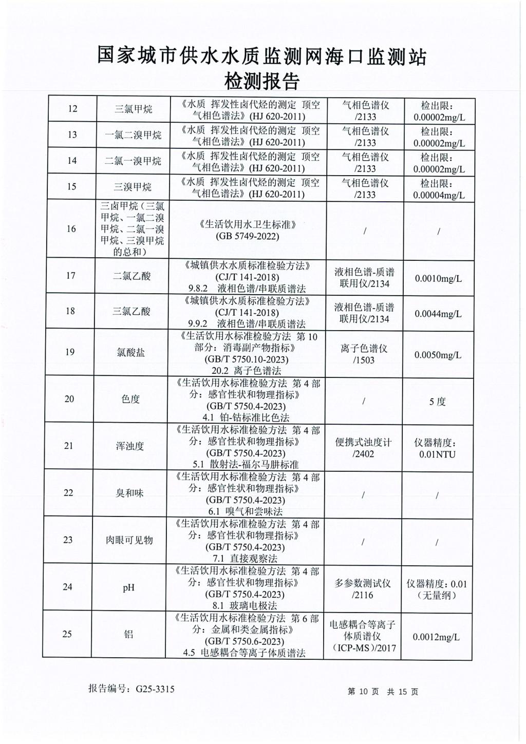 海口開源水務(wù)有限公司米鋪水廠出廠水2025年下半年年檢檢測報(bào)告