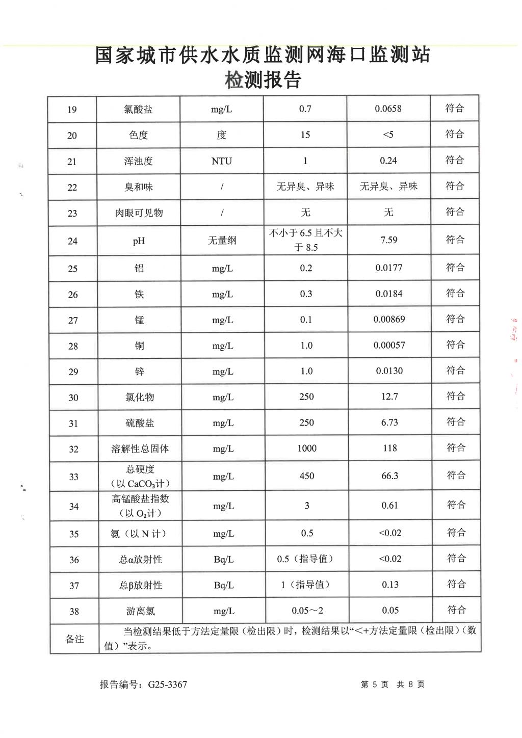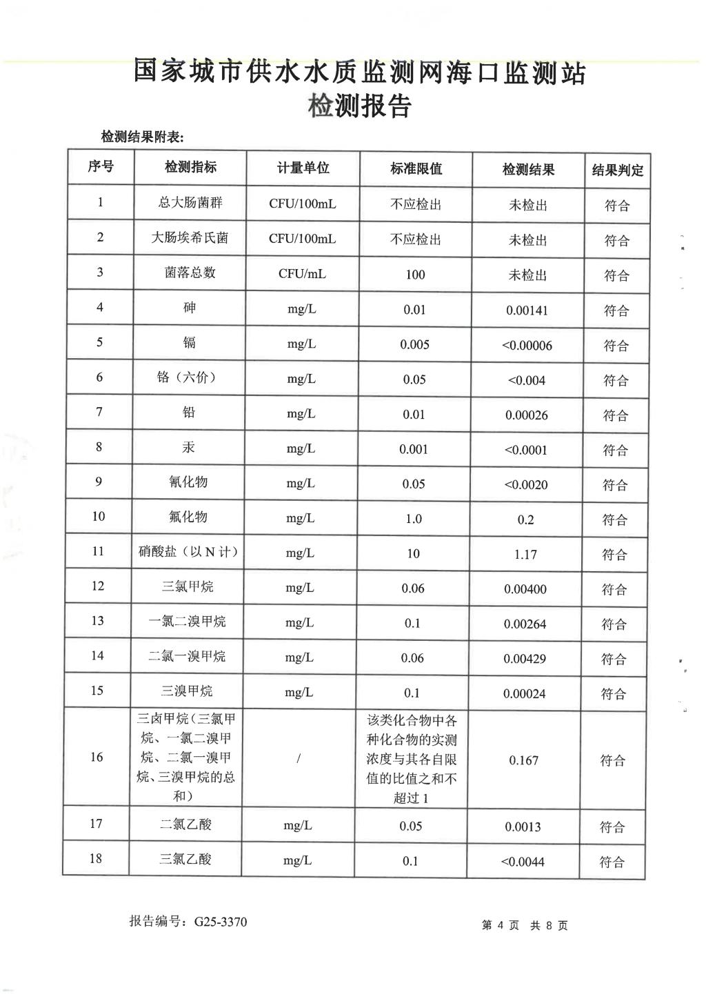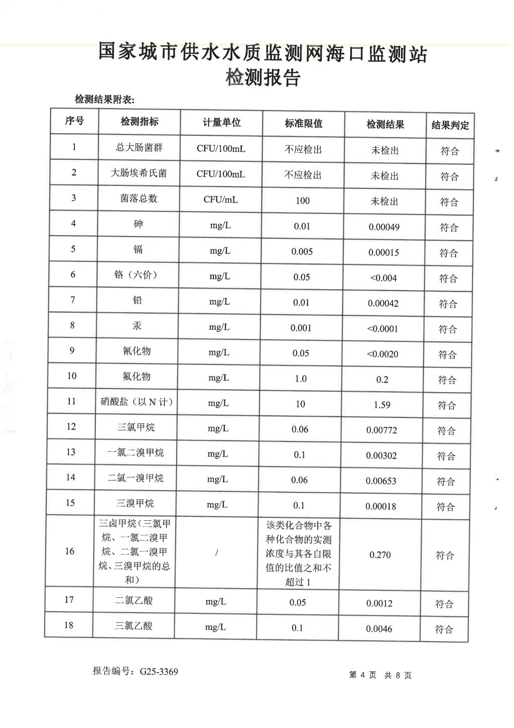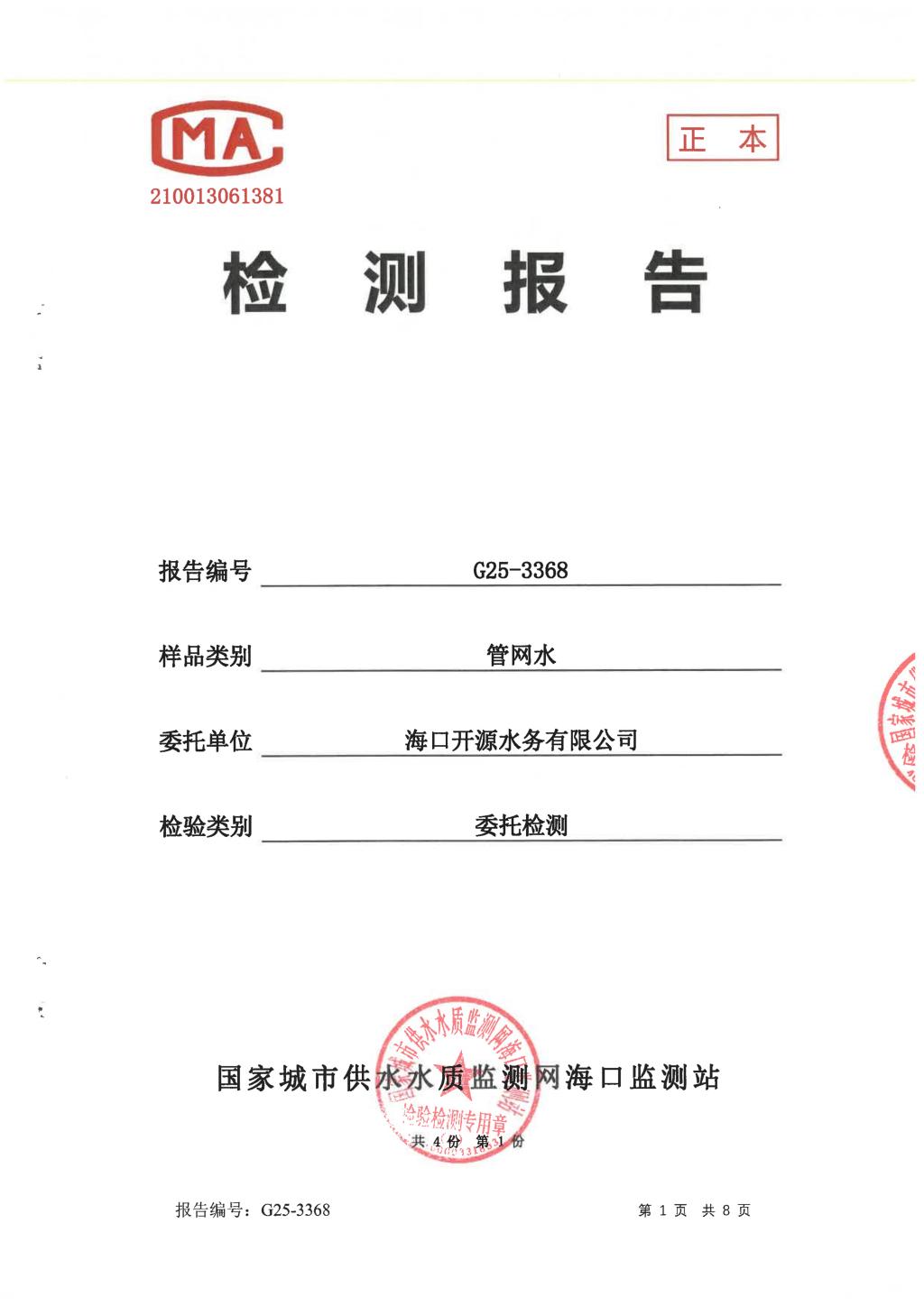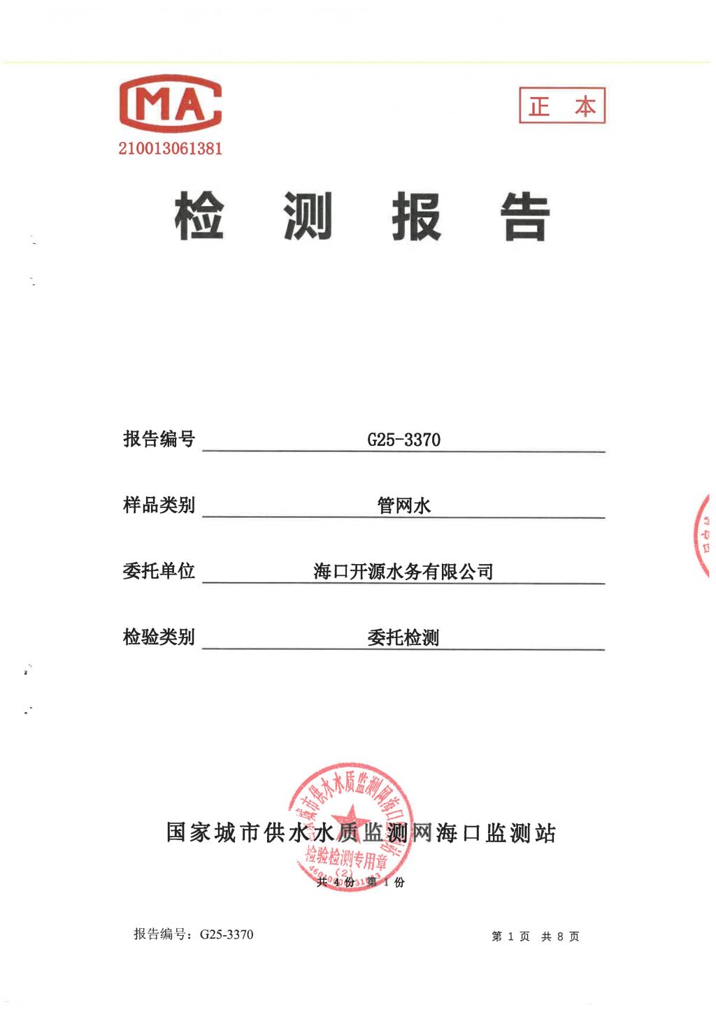 水質(zhì)報告
