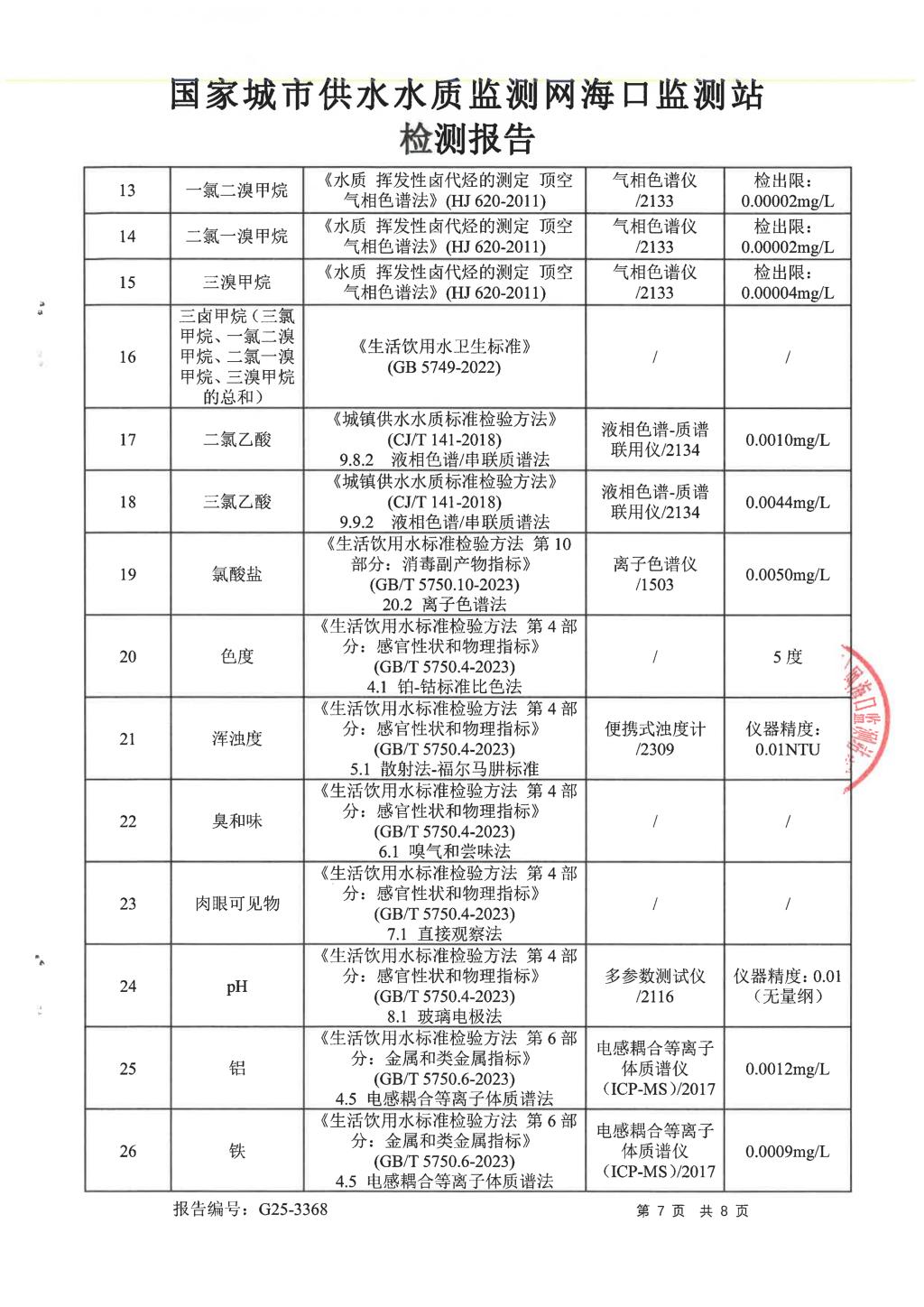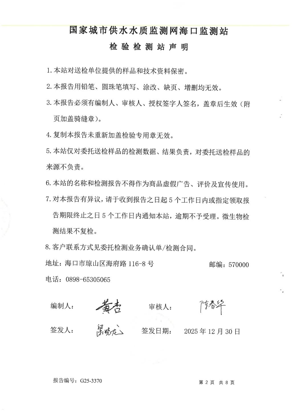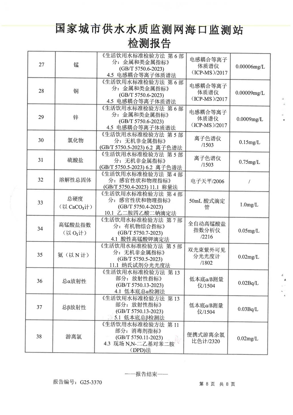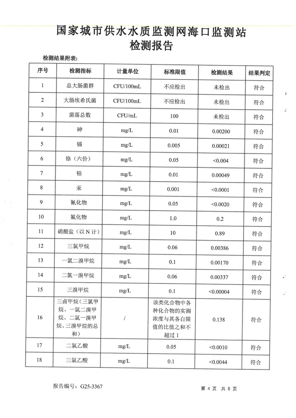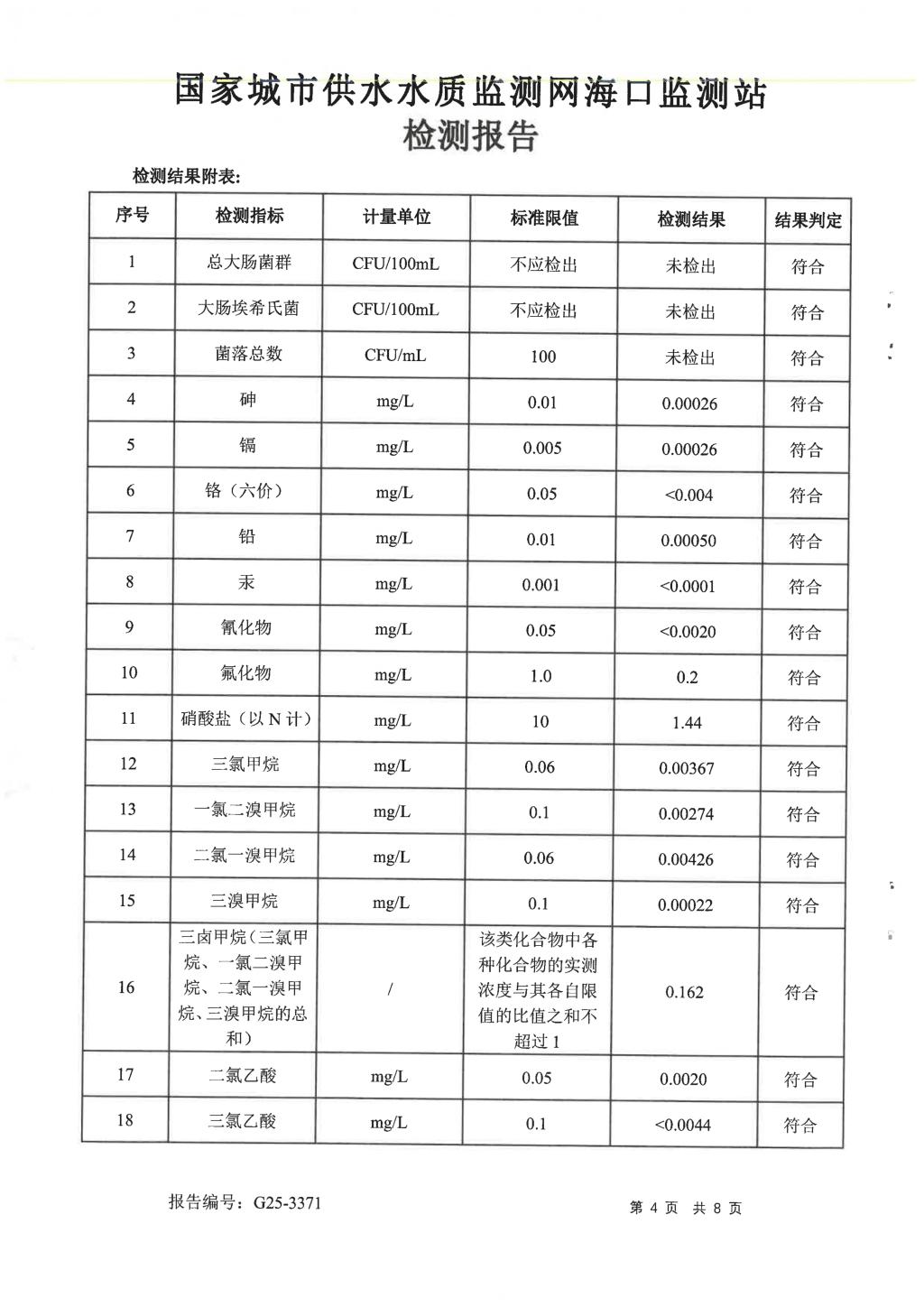 水質(zhì)報告