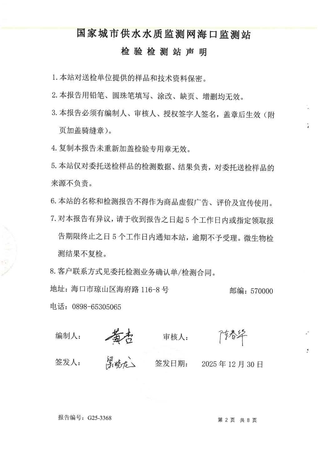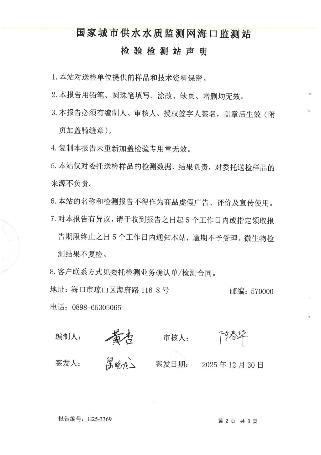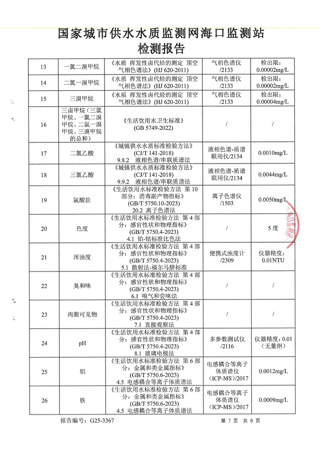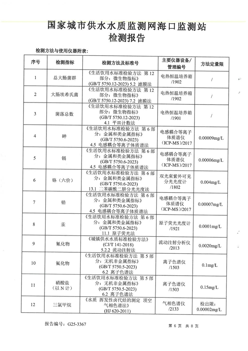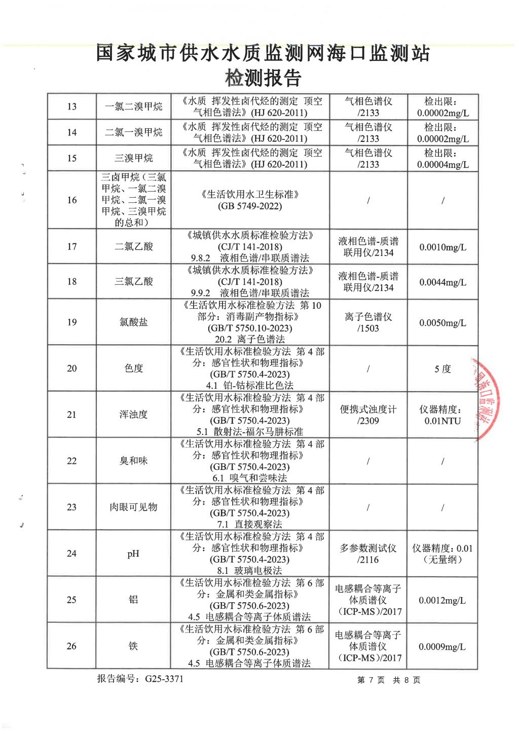 水質(zhì)報告